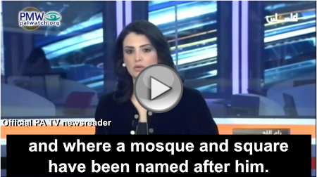 PMW documented that Fatah hurried to praise the murderer the week he was killed, calling him "heroic" and "the perfect person" deserving of a "military salute." The local Fatah branch called him "a daring fighter," a "lion," and "Rambo of Palestine."