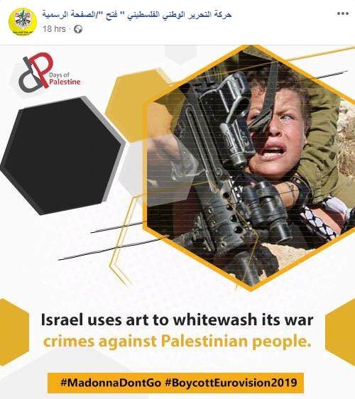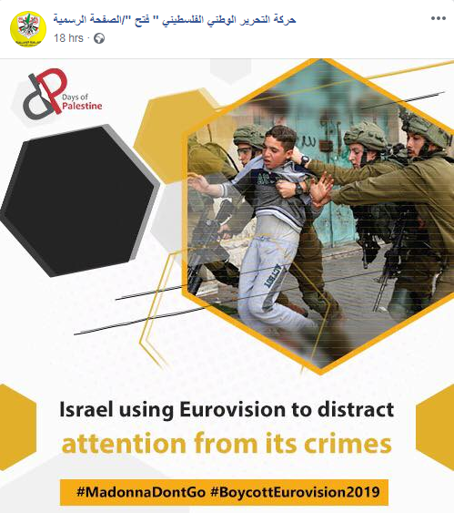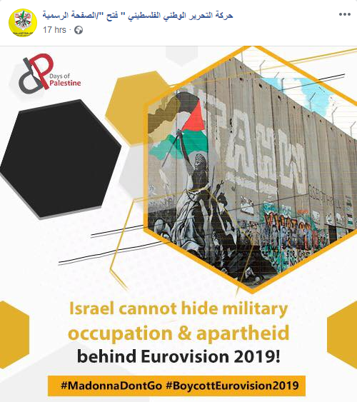 Images posted in separate posts on the official Fatah Facebook page, in response to Eurovision song contest being held in Tel Aviv, Israel, May 14-18, 2019