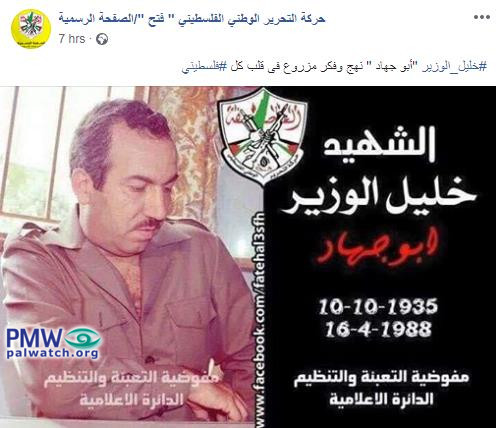 Palestinian Media Watch has documented thatAbu Jihad is one of the most honored terrorist murderers by the PA and Fatah.