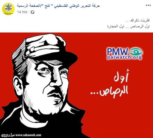 Abbas' Fatah Movement posted on its official Facebook page the invitation to the Abu Jihad conference mentioned above as well as the following images glorifying the terrorist murderer, who is also often honored with the title and nick name "The first bullet, the first stone":