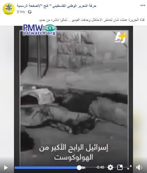Fatah posted offensive Holocaust video after Al-Jazeera condemned and removed it
