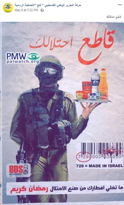 Fatah Facebook posts graphic calling on Palestinians to boycott Israeli products: “Boycott your occupier"