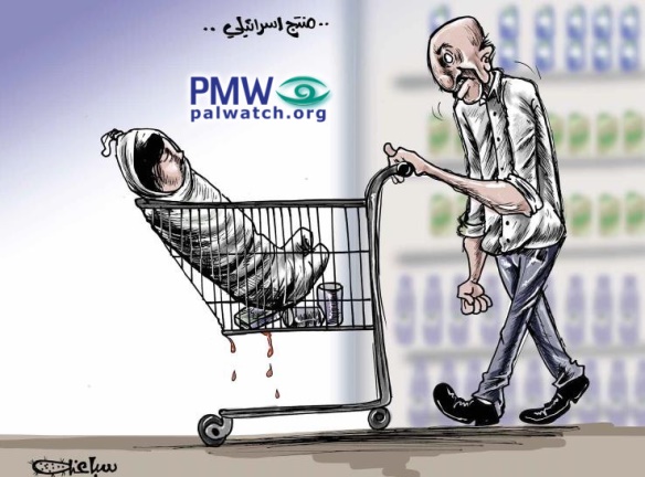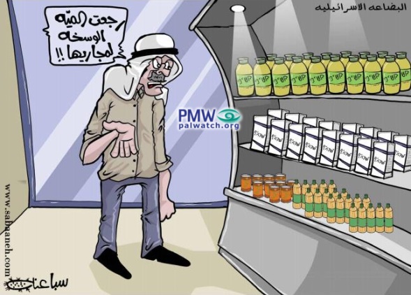 Palestinian Authority cartoon: Buying Israeli foods arms Israeli soldiers