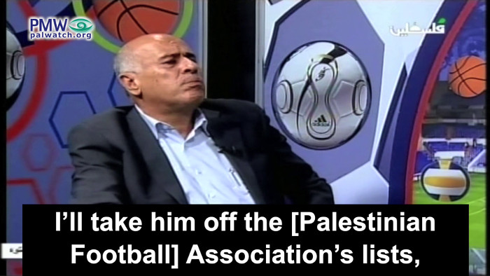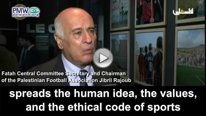 Rajoub's reference to "the ethical code of sports" is also ironic as he himself is currently under investigation by the Ethics Committee of FIFA, the international football organization, for breaching FIFA's rules by promoting and glorifying terror against Israelis. FIFA's investigation is based solely on complaints submitted by Palestinian Media Watch, including an extensive report entitled Kick Terror Out of Football which details Rajoub's terror promotion.