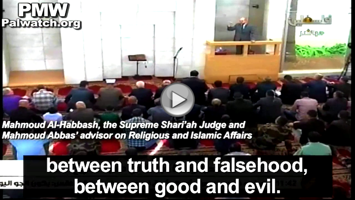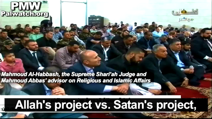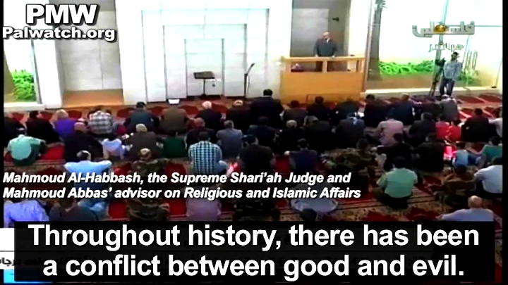 Mahmoud Abbas' Advisor on Religious and Islamic Affairs and Supreme Shari'ah Judge Mahmoud Al-Habbash: "The conflict here in Palestine between us and the criminal occupation and its criminal leaders, is a further manifestation of our trials, a further manifestation of the historic conflict between truth and falsehood, between good and evil. Throughout history, there has been a conflict between good and evil. The good is represented by the prophets and their supporters. The evil is represented by the devils and their supporters, by the satans and their supporters. We are not inventing anything new here (i.e., Palestinian-Israeli). This is a conflict between two entities, good and evil, between two projects: Allah's project vs. Satan's project, a project connected to Allah, which is his will - true and good - and a project connected to oppression and Satanism, to Satanism and animosity, occupation and barbarism."