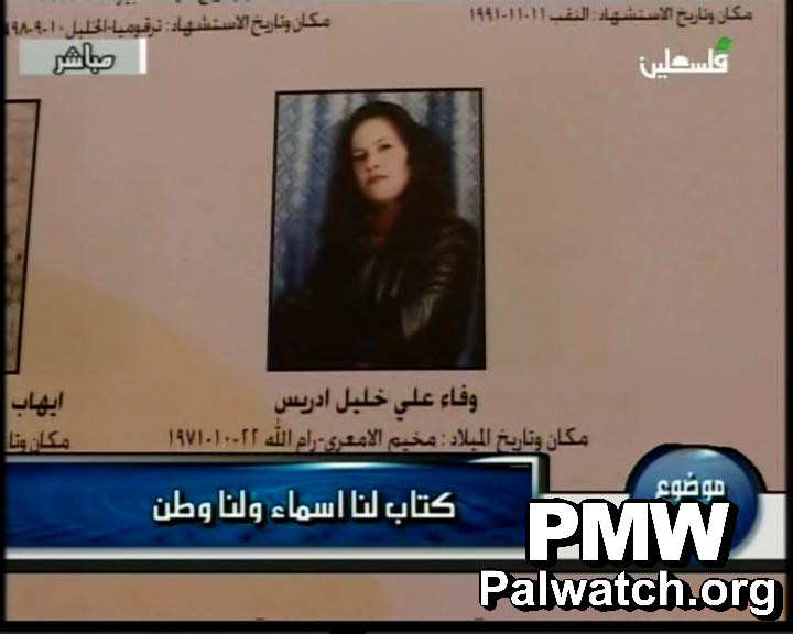 Palestinian Authority TV reports on comprehensive list of Palestinian Martyrs, including suicide bomber Wafa Idris