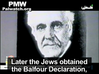 Former PA Minister of Education Sabri Saidam similarly promoted the idea that Europe plotted to ship its Jew problem off to “Palestine” and for this purpose came up with the Balfour Declaration. Saidam posted a video produced by official PA TV, which explained that Europe "was sick of the behavior of the Jews... and therefore it planned to get rid of them":