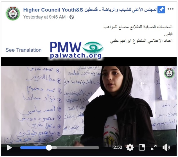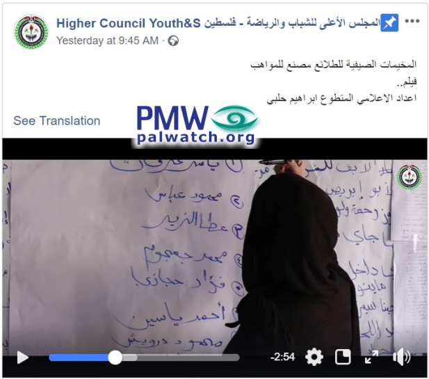 In a video posted by the PLO Supreme Council for Sport and Youth Affairs - an institution that arranges and runs summer camps in the PA - Palestinian kids explain what they learned at one such camp.