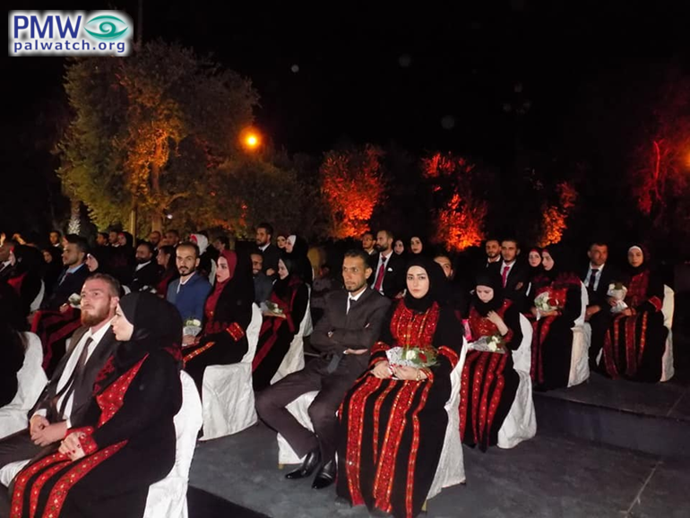 "A group wedding of 90 Palestinian and Syrian grooms was held yesterday evening, Thursday [July 25, 2019], in Damascus, the capital of Syria, under the auspices of [PA] President Mahmoud Abbas.