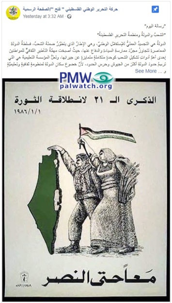 Fatah Facebook posts image of old Fatah poster commemorating Fatah’s first terror attack, alongside map of “Palestine” that erases Israel