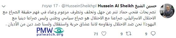Fatah official on Twitter against Hamas official’s genocidal antisemitic remarks: “Our struggle is of a national political nature, NOT a religious conflict against the Jews”