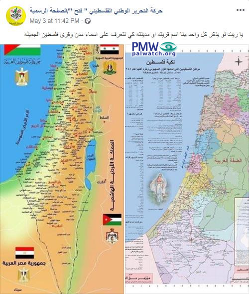 Fatah Facebook posts maps of “Palestine” erasing Israel