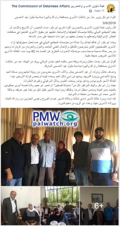 Posted text: "Abu Bakr visited a number of prisoners' families in the Ramallah and El-Bireh district for Eid Al-Adha (i.e., the Sacrifice Feast)