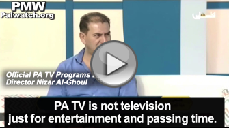 Numerous earlier statements confirming the PA's control of the media have been exposed by Palestinian Media Watch. For example, two officials employed at PA TV explained how they see their role: The director general of PA TV, Khaled Sukkar, explained that PA TV "is not a neutral media outlet; it is a media outlet with a national cause." [Official PA TV News, July 23, 2018] Programs Division Director of official PA TV Nizar Al-Ghoul also stated that PA TV is not merely for entertainment but a central part of the "struggle." He referred to Ahmad Assaf, explaining that he "would follow everything small and large, direct every assignment, and follow the details. He surprises you when he calls you to ask about a tiny detail in some program." [Official PA TV, Palestine This Morning, Aug. 5, 2018]