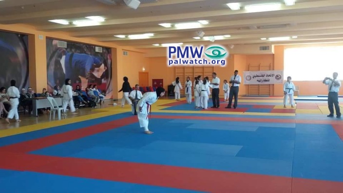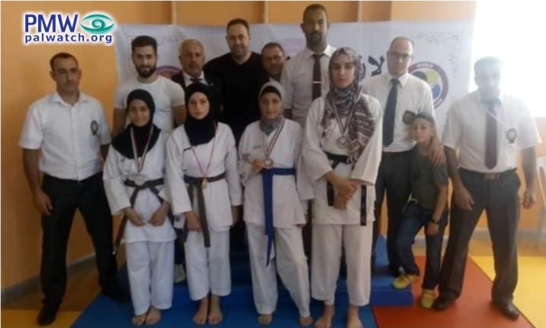 “The southern branch of the Palestinian Karate Federation completed the kata and fighting championship for girls, the Sisters of Dalal Mughrabi Championship (i.e., Mughrabi was a terrorist who led murder of 37, 12 of them children), at Putin Sports Hall in Bethlehem with the participation of 55 female athletes from a number of centers in the southern [West Bank]. Head of the southern [Palestinian Karate] Federation Nidal Abu Turki and Head of the Southern [Palestinian Karate] Federation’s Technical Committee Muhammad Abu Eida were present at the championship.”