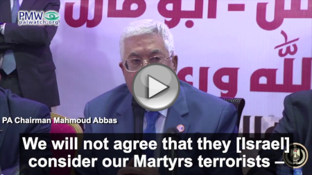 The technique is fundamental to the PA leadership’s diplomacy. When PA Chairman Mahmoud Abbas recently met with German Chancellor Angela Merkel in Berlin, he claimed the PA is “spreading the culture of peace”: