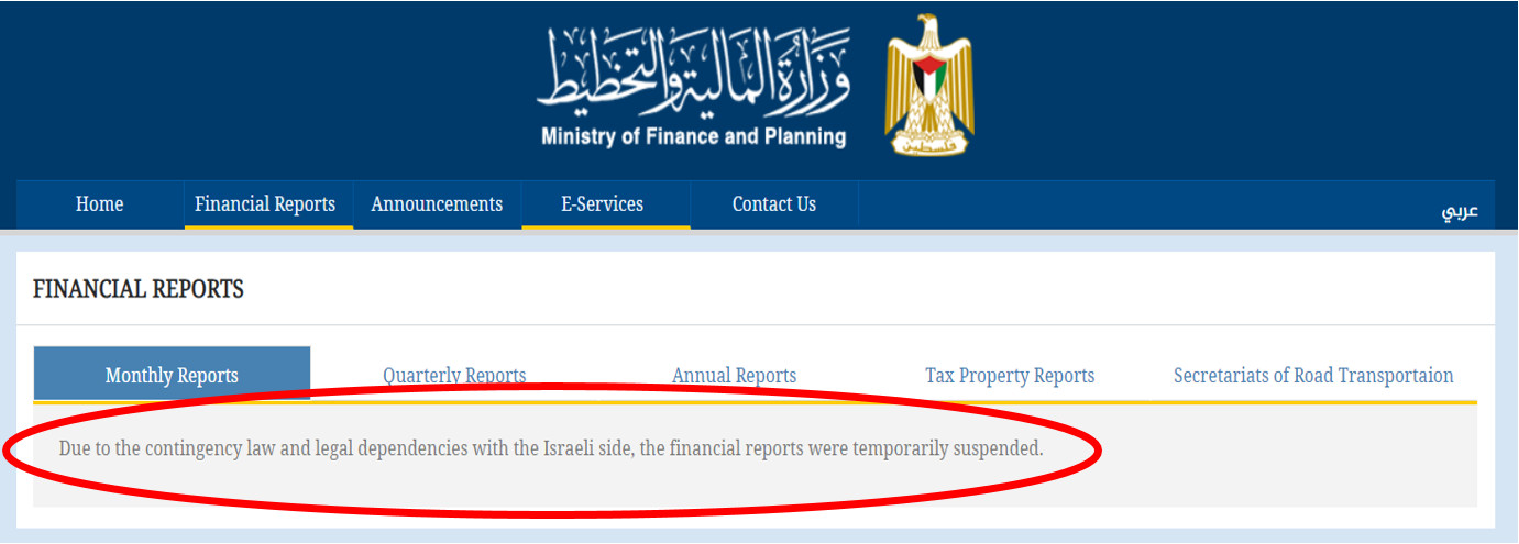 Having understood that the financial transparency was used by PMW and then the Israeli government to see the precise amount the PA was spending to reward terrorist prisoners, the PA decided to hide these figures from the international community. The website of the PA Ministry of Finance, in place of the financial reports now has this announcement: