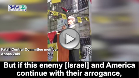 The libel that Israel wants to destroy Palestinians might very well be just a reflection of Zaki's and other Palestinian leaders' own dreams to destroy Israel. In a speech at a ceremony arranged by Fatah in Hebron for students who took the matriculation exams, Zaki threatened to obliterate all of Israel. He stated that unless Israel - the "enemy" - and the US stop "their arrogance," Palestinians will defeat all of Israel: