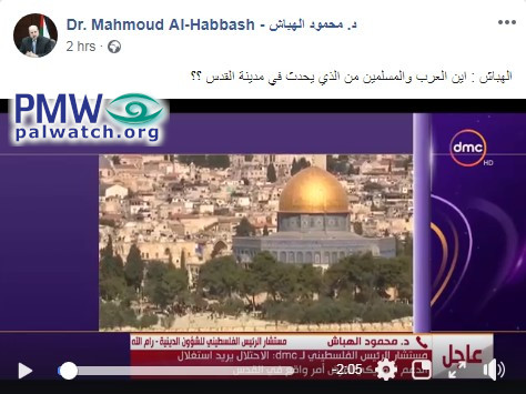 Posted text: "[Supreme Shari’ah Judge Mahmoud] Al-Habbash: Where are the Arabs and the Muslims regarding what is happening [in Jerusalem]?”