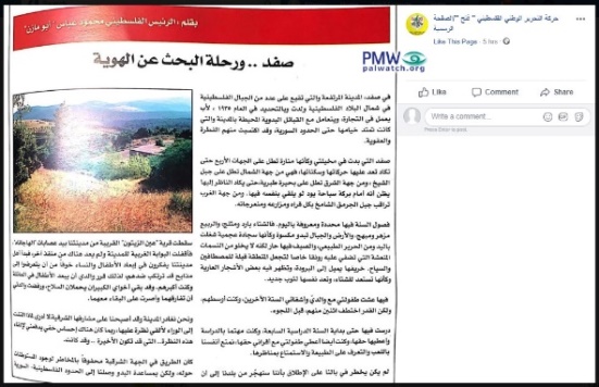 The image shows an article written by PA Chairman Mahmoud Abbas.