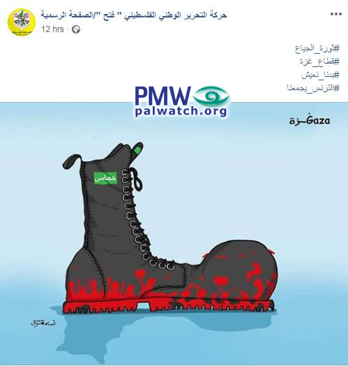 Fatah cartoon depicts bloody boot of Hamas stamping on Gazan protestors