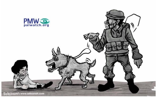 Muzzled Israeli soldier allows dog to menace Palestinian child - Palestinian Authority daily cartoon