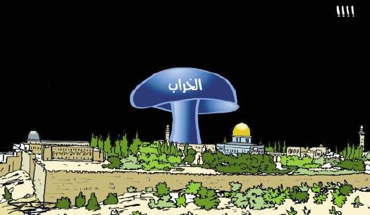 Palestinian Authority cartoon: Hurva synagogue depicted as mushroomAl-Ayyam, independent Palestinian newspaper |Mar 16, 2010Text: “Al-Kharaab”
