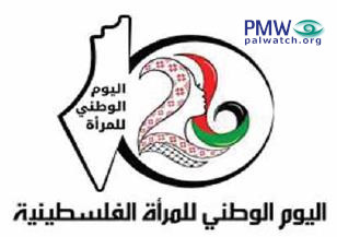 Alongside the following article is a logo for National Palestinian Women's Day, which consists of the PA map of "Palestine" that presents all of Israel as "Palestine" together with the PA areas, with a circle next to it so that the map and circle together form the number "10" – for the month of October. On the map is written: "National Women's Day." Within the circle is the image of a woman whose hair forms the number “26,” and part of whose hair is in the colors of the Palestinian flag. Under the logo is written: "National Palestinian Women's Day."