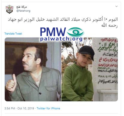 Tweet: “Today, October 10, is the birthday of Martyr Khalil Al-Wazir ‘Abu Jihad’, may Allah have mercy on him”