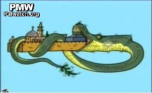 Israel as snake eating JerusalemOfficial Palestinian Authority TV|Mar 17, 2010Israel is portrayed as a snake eating Jerusalem.