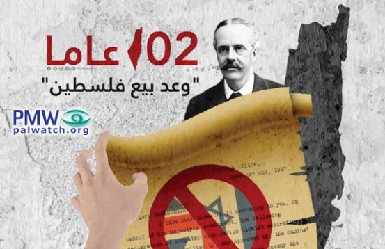 “Yesterday, Nov. 2 [2019], was the 102nd anniversary of the ominous Balfour Promise (i.e., Declaration), in whose framework Britain gave the Jews a right to establish a national home in Palestine.