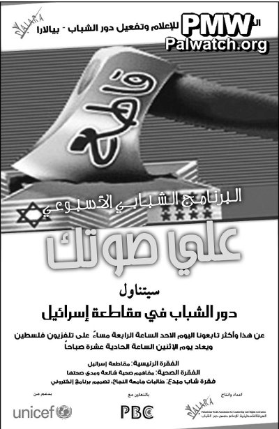 Note: The organization PYALARA (Palestinian Youth Association for Leadership and Rights Activation) has been funded by UNICEF since the year 2000: "PYALARA has been chosen by UNICEF as a major strategic partner in Palestine." [PYALARA website]