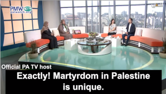 Official PA TV host: "Exactly! Martyrdom in Palestine is unique. We are the only ones who celebrate the news of a Martyr's wedding."
