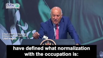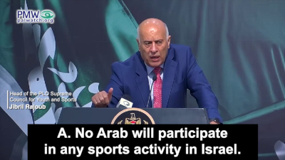 Considering that Rajoub has now reiterated the PFA policy of prohibiting and boycotting sports with Israelis, PMW once again calls on FIFA to stop ignoring the continued blatant breach of its rules and regulations by Rajoub and the Palestinian Football Association and to adopt the steps taken by the International Judo Federation against Iran, and suspend the PFA from FIFA and discipline Rajoub to the full extent of FIFA's rules.