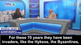 Riyad Al-Aileh, a Palestinian political science lecturer from Al-Azhar University, stated that Jews only came as ”invaders 70 years ago”: