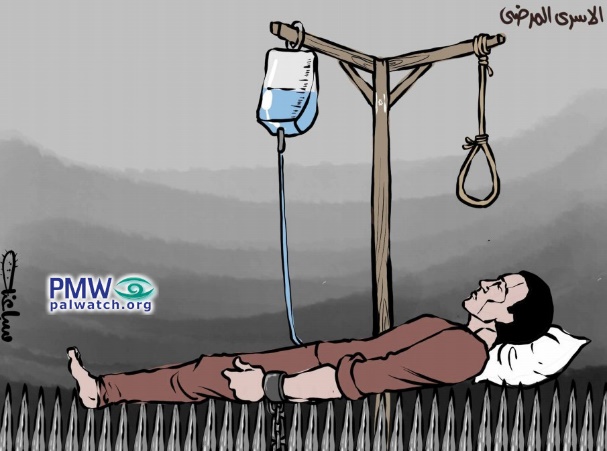 The cartoon was published the day after Palestinian prisoner Sami Abu Diak died of cancer despite treatment provided by Israel during his imprisonment.