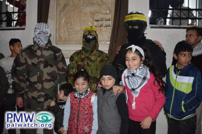 The pictures accompanying the article shows masked armed men, some in military uniforms, holding yellow Fatah flags.
