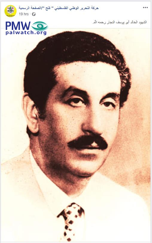 Posted text: “Eternal Martyr Abu Yusuf Al-Najjar (i.e., commander of operations of the Black September terror organization), Allah’s mercy upon him”