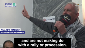 Head of Fatah’s Jenin Branch Ata Abu Rmeileh: “Our God has honored us and placed us in this land to stand against the invaders and the oppressors. The Tatars, the Mongols, the Crusaders, and the British have left, and these [Israelis] will leave, they will leave [too]. We are carrying out Ribat (i.e., religious conflict over land claimed to be Islamic) in this land. We in the Fatah Movement… today we are at the beginning of an ongoing confrontation, and are not making do with a rally or procession.”