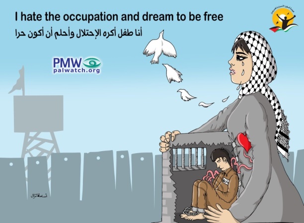 Text on cartoon in English: “I hate the occupation and dream to be free”