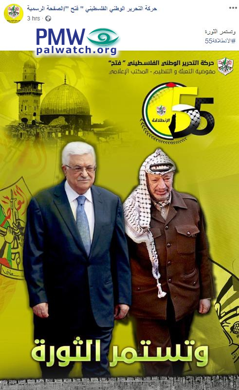 Fatah post for 55th anniversary of first terror attack features Abbas and Arafat