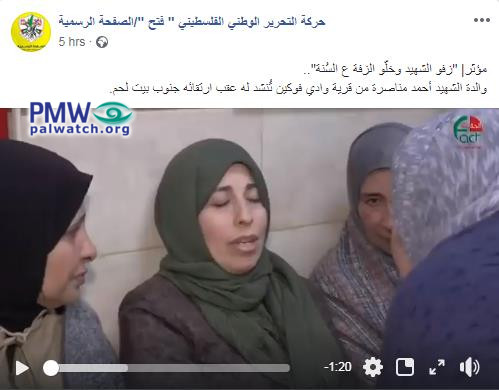 Mother of Ahmed Manasrah: “I consider my son to be a Martyr with Allah. Allah willing, our Lord will place him with the Martyrs, prophets, and righteous in the highest level of Paradise. My son sacrificed his life for Palestine, and Allah willing Palestine will be liberated. All our lives are for you, Palestine! By Allah, nothing is too precious for you, Palestine. May Allah take revenge on the occupier – Allah willing he [the occupier] will pass. My Lord, I am extremely satisfied with my son’s death as a Martyr. Praise Allah! Praise Allah!