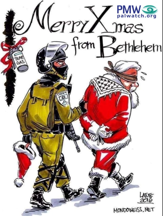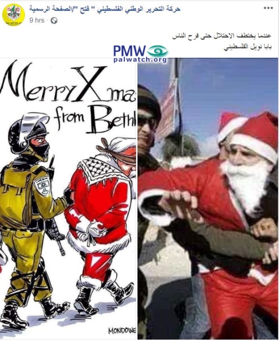 Santa arrested by Israeli soldiers in Fatah cartoon