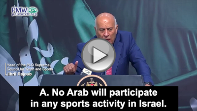 Now, adding his blessings to Arab athletes who have already refused to compete with Israelis, Rajoub is demanding of the entire Arab world to implement all of the clauses defining the prohibited “normalization” with Israel in sports: