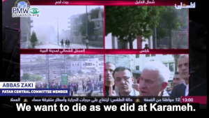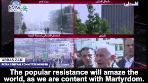 Zaki was even more explicit when a second time he called for terror recently – using the PA euphemism “popular resistance” - and praised Martyrdom-death as a goal: