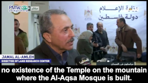 The director of the Palestinian NGO the Land Research Center repeated this PA libel, stating that the Jewish Temple never existed and that all Jewish history is “a false narrative”: