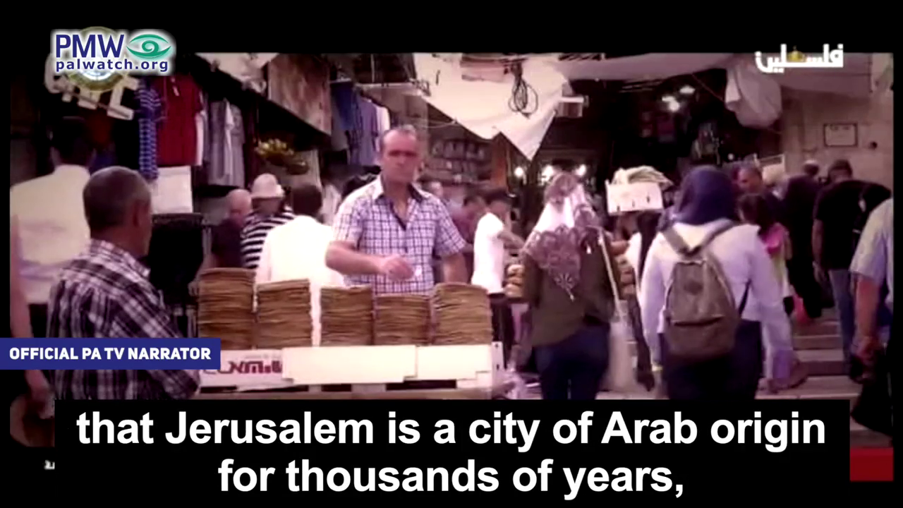 Official PA TV narrator: The historical documents in the possession of the Palestinians of Jerusalem testify that Jerusalem is a city of Arab origin for thousands of years, and its history and culture are Islamic. Since Islam's conquest [in the 7th century], the Al-Buraq Wall (i.e., the Western Wall) has remained an Islamic waqf. The Muslims have the absolute right to it and there is not even one rock there that dates back to the period of King Solomon, as the Jews claim.”