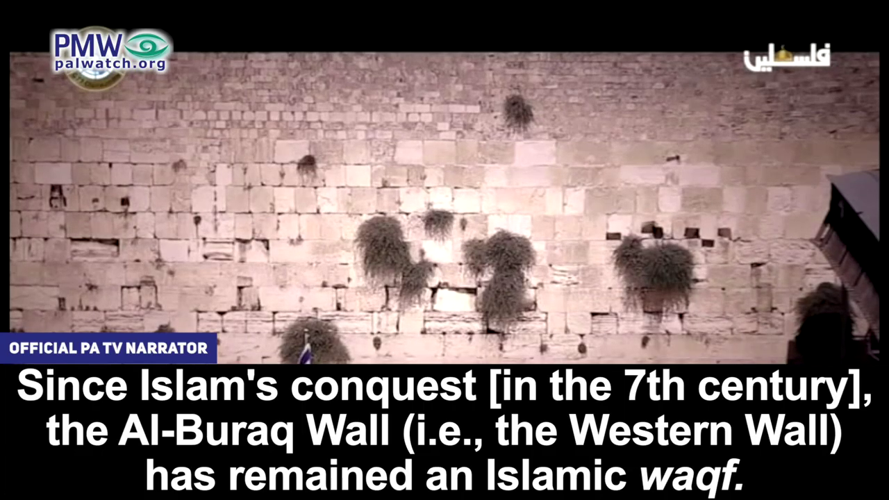 A filler between programs on official PA TV taught Palestinian viewers that the most holy site for Jews – the Western Wall – belongs only to Muslims. Referring to the wall with its Muslim name, the Al-Buraq Wall, PA TV explained that it is an Islamic waqf - an inalienable religious endowment in Islamic law, and therefore Jews have no rights to it.