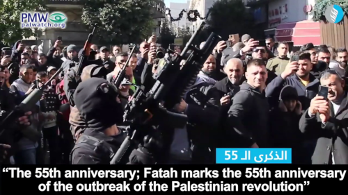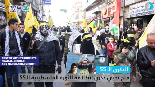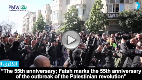 - Fatah-produced video focuses on Palestinians marching with knives, rifles, and mock explosive belts at anniversary rally in Ramallah