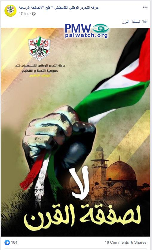 Fatah post says “No to the deal of the century” with raised fist
